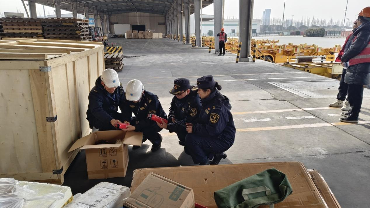 联合海关开箱查验。太仓海事局 李明轩 摄