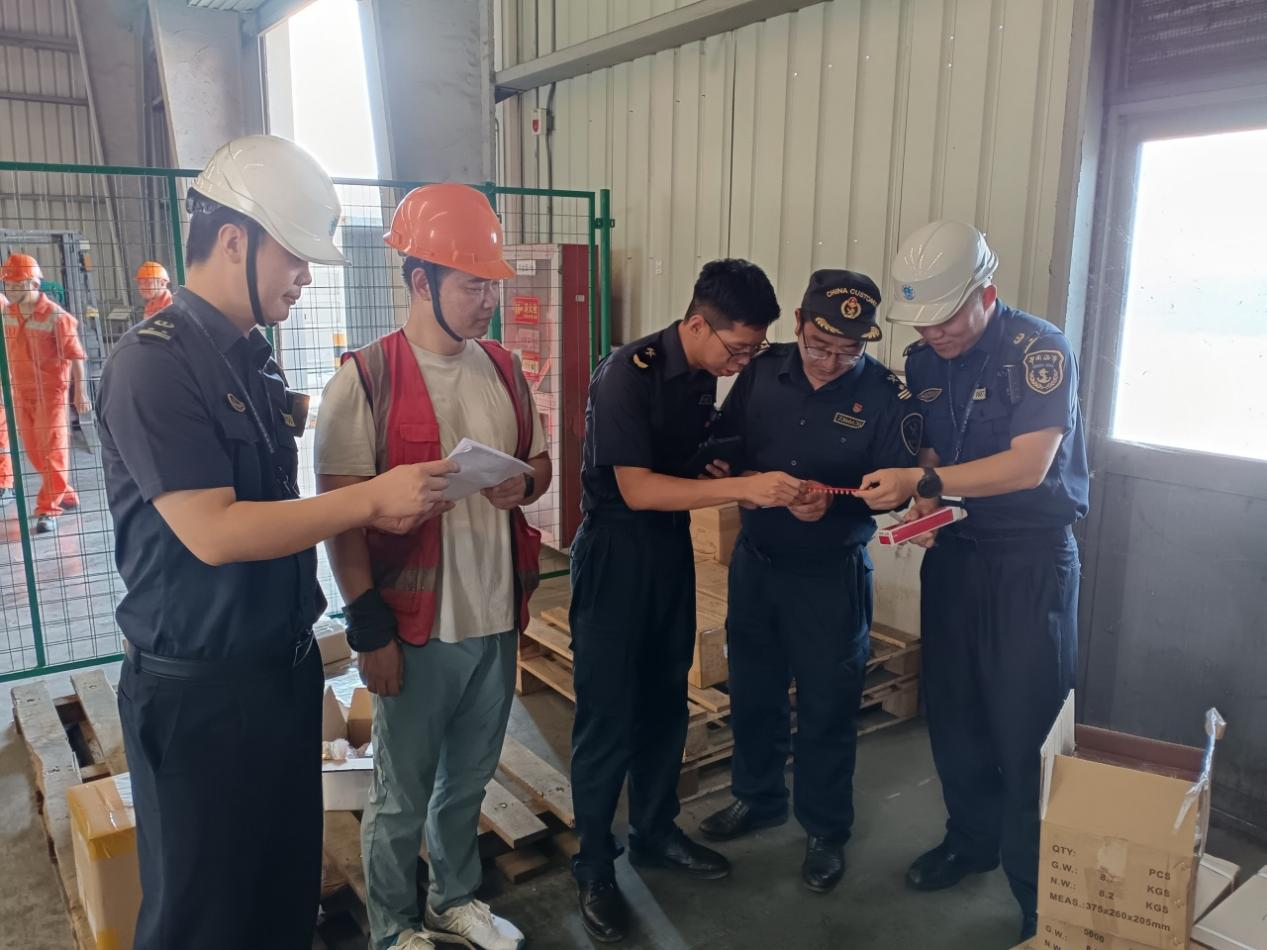 联合海关检查谎报危险货物。太仓海事局 李明轩 摄